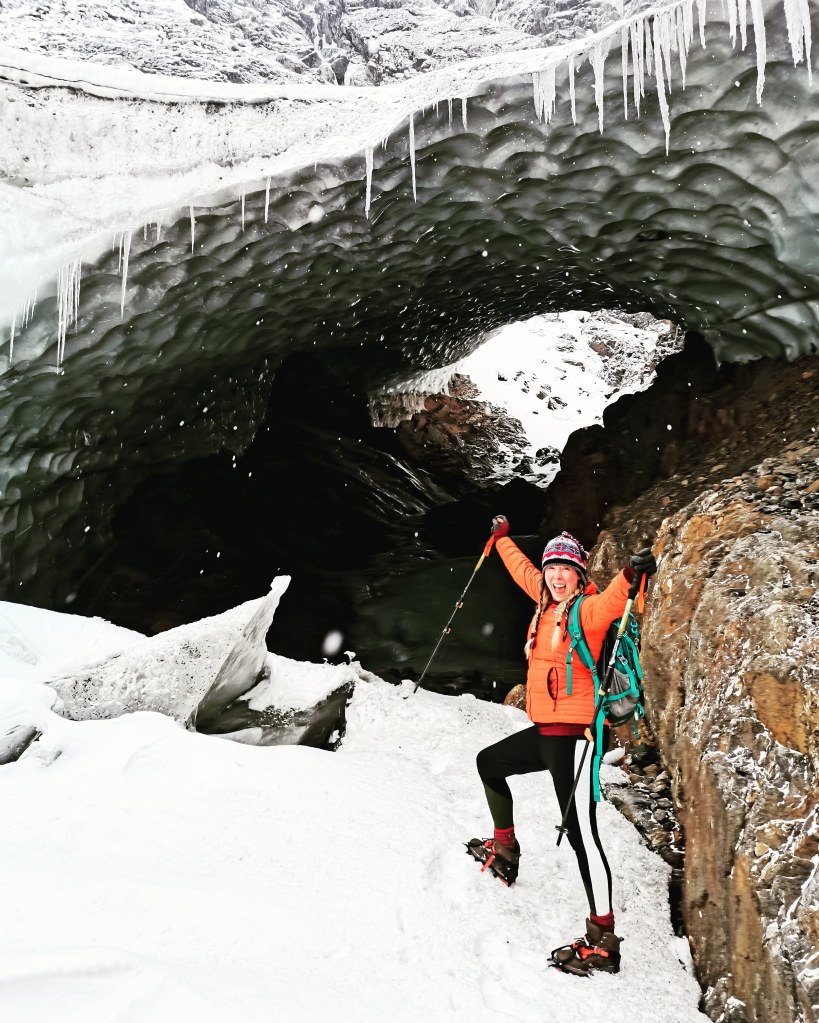 The ice lake itself was completely frozen at this time of year, which meant that with our crampons, we could venture across it to the remnanets of the glacier.